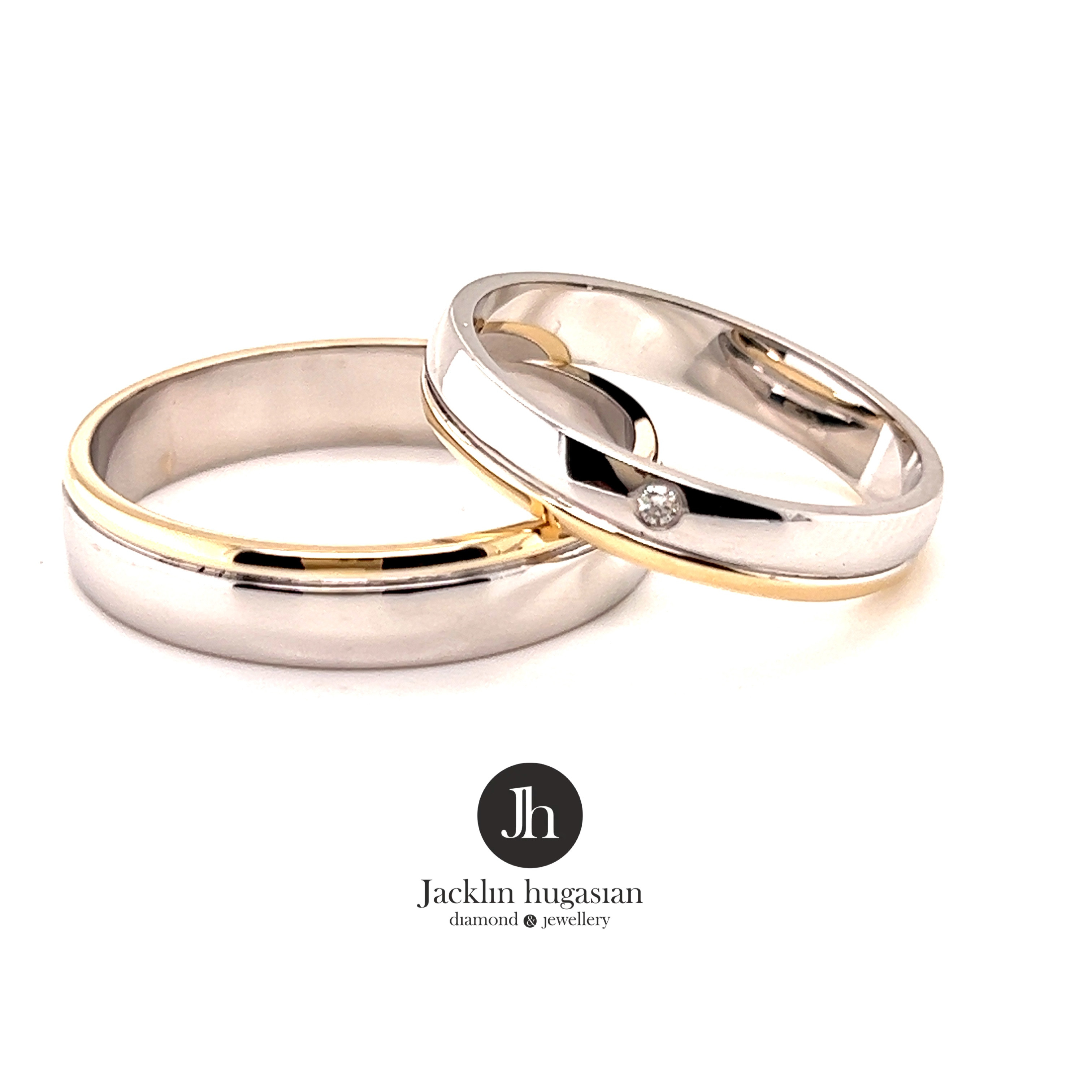 Венчални халки от "Jacklin hugasian" в жълто и бяло злато гланц с диаманти.