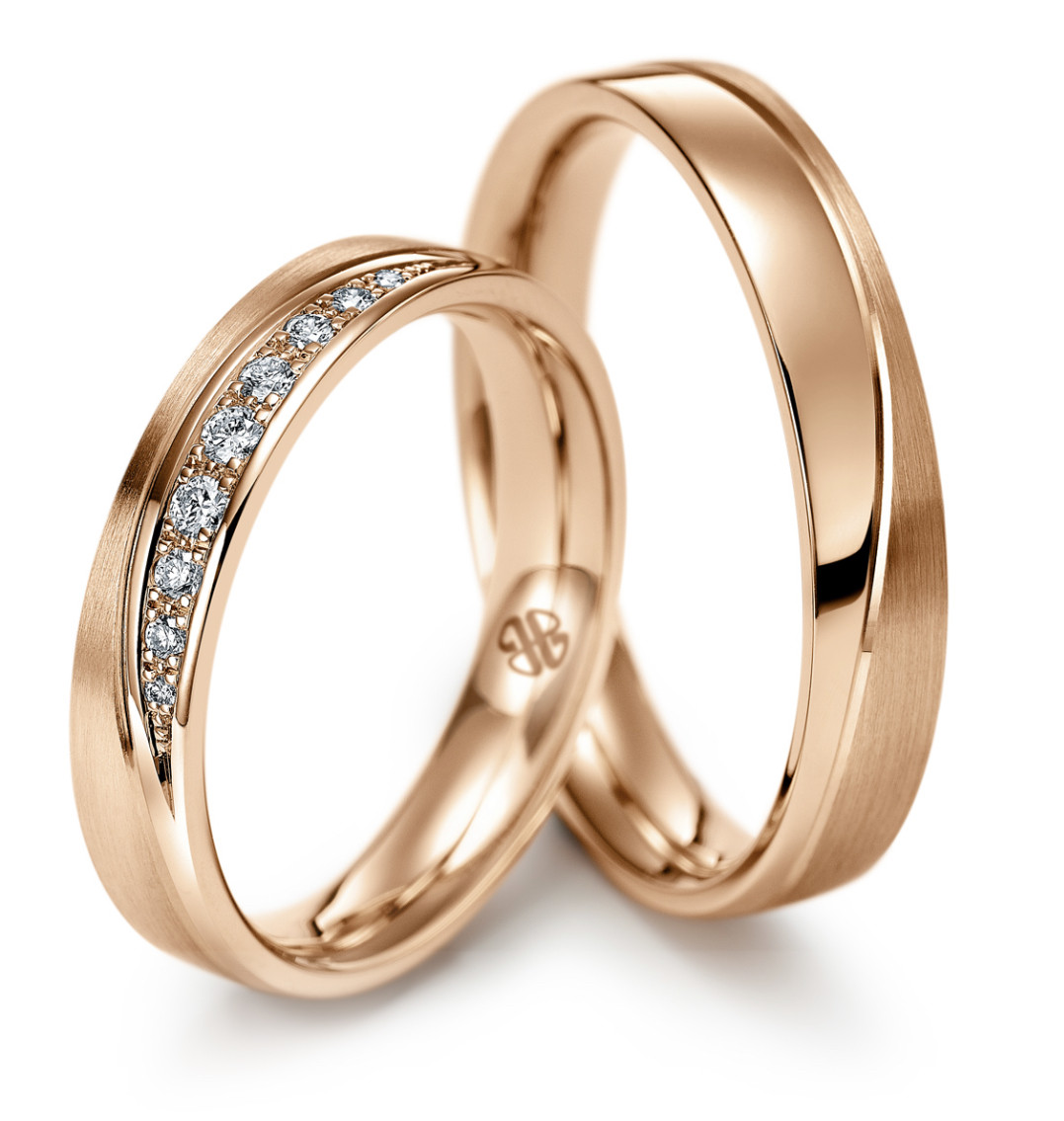 Венчални халки от "Jacklin hugasian" в розово злато с циркони
