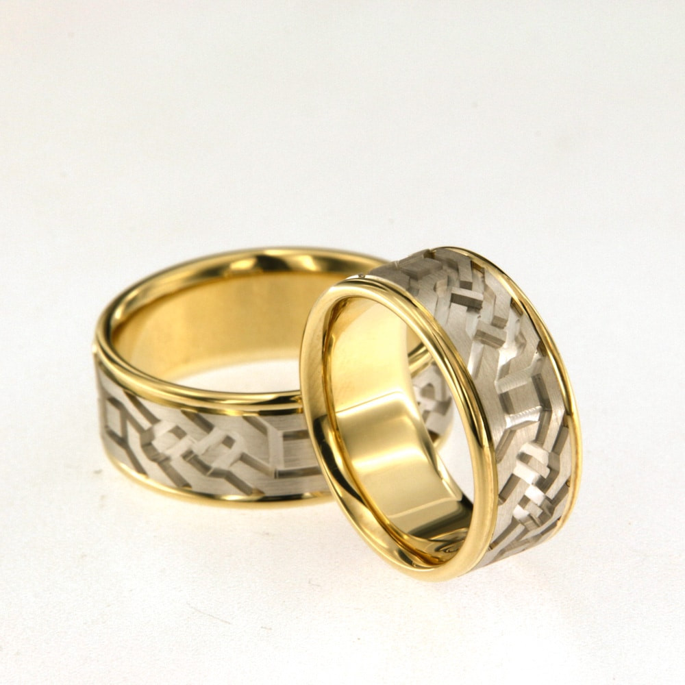 Венчални халки от "Jacklin hugasian" в бяло и жълто злато мат и гланц. Фабрична изработка.