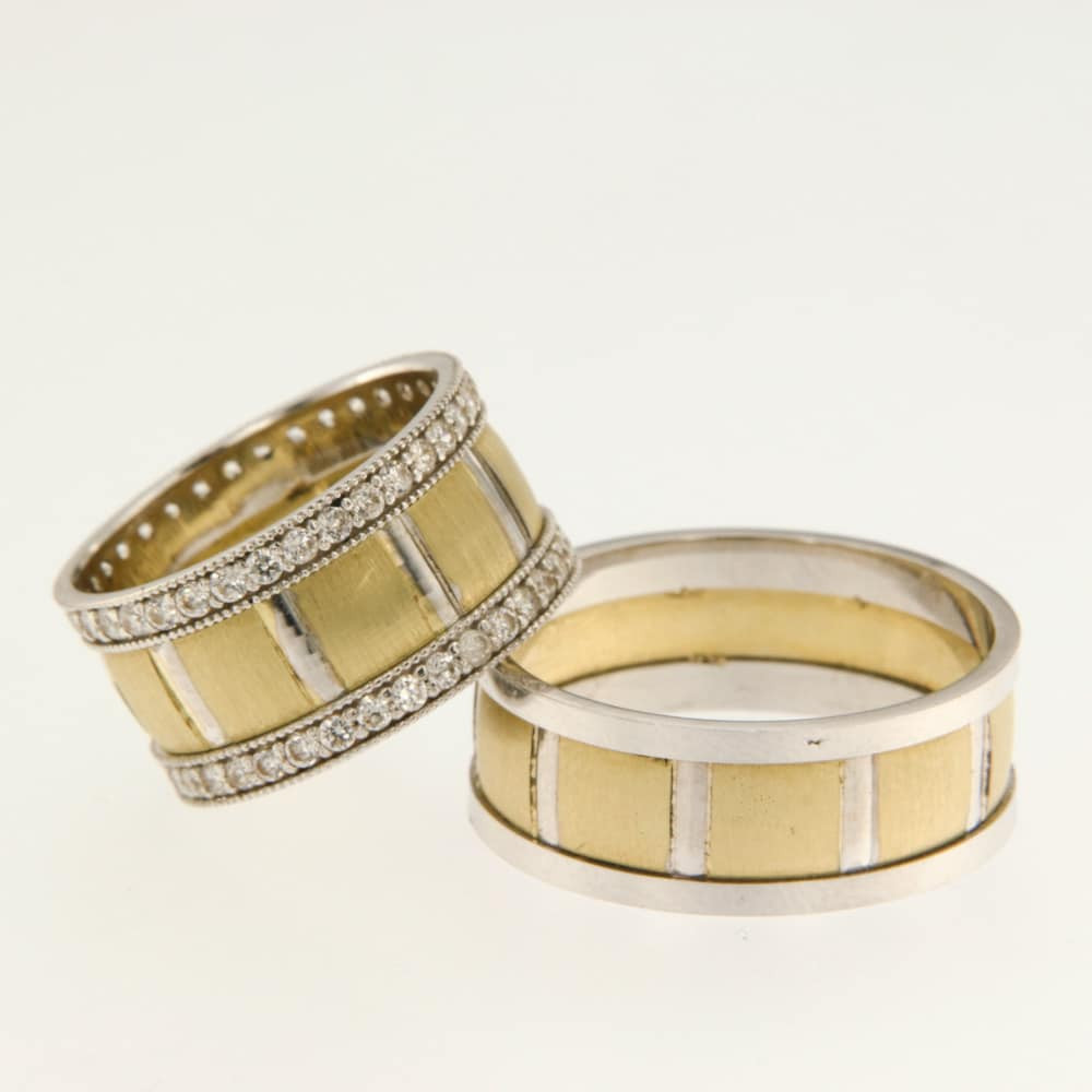 Венчални халки от "Jacklin hugasian" в бяло и жълто злато с цирконии. Фабрична изработка