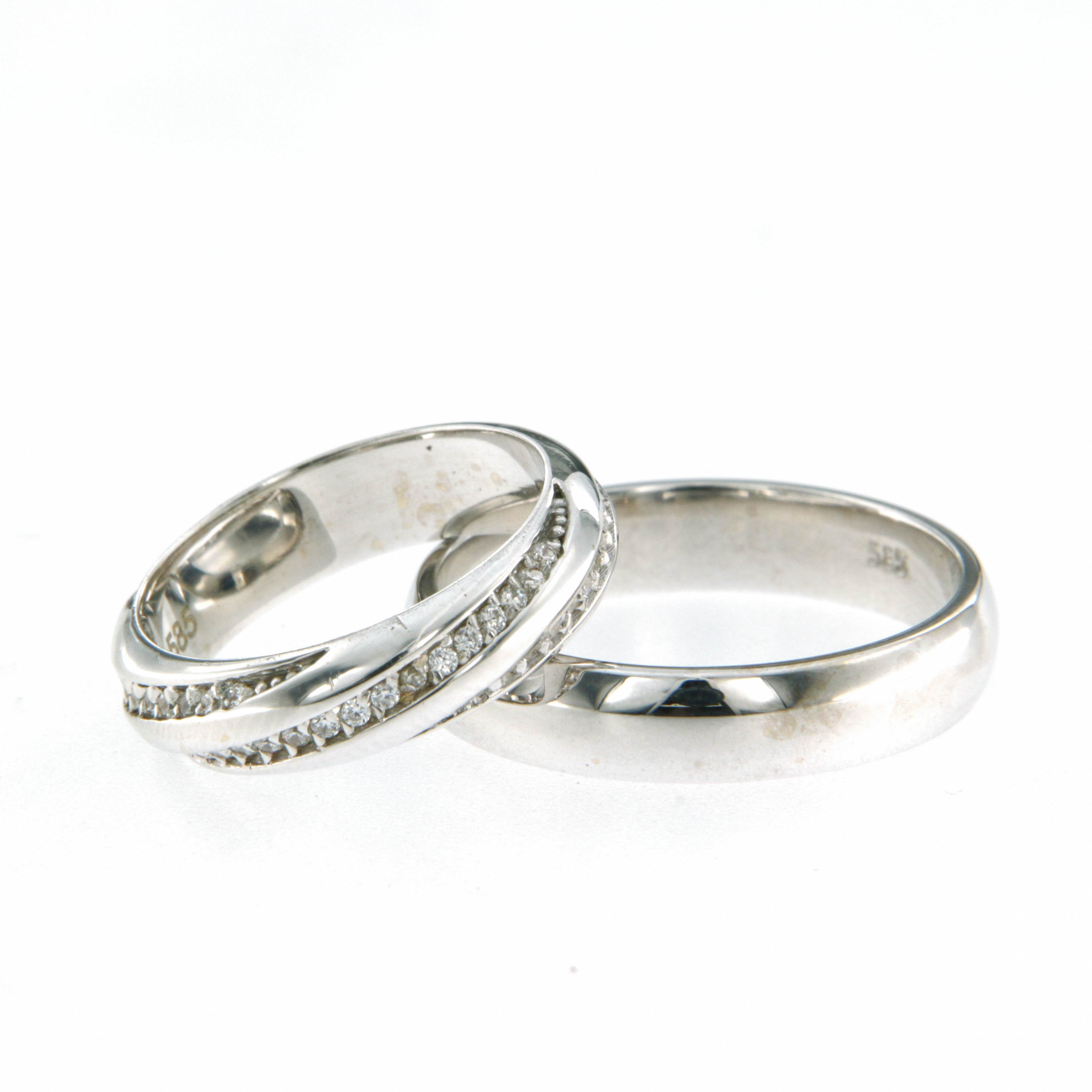 Венчални халки от "Jacklin hugasian " в бяло злато, гланц с цирконий.Фабрична изработка.