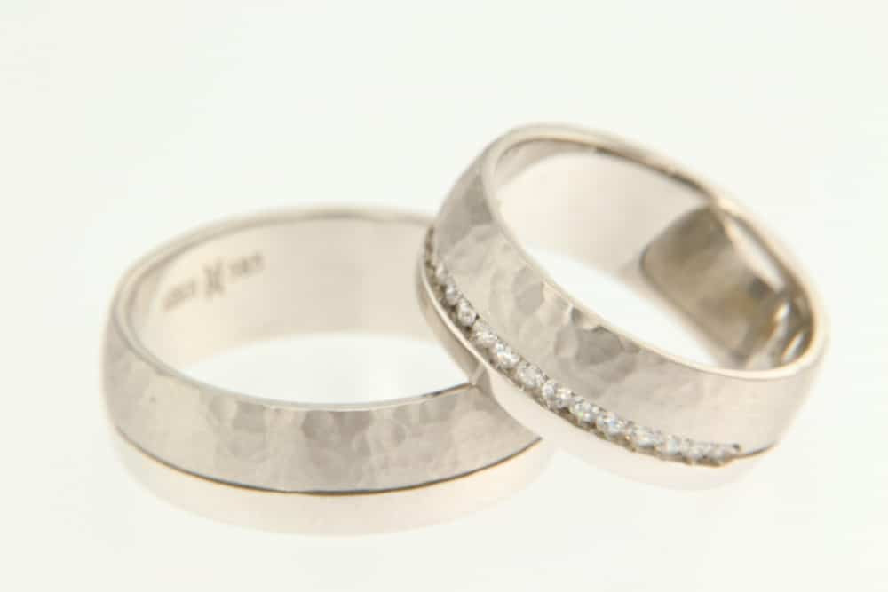 Венчални халки от "Jacklin hugasian" в бяло злато мат и гланц с цирконии. Фабрична изработка.