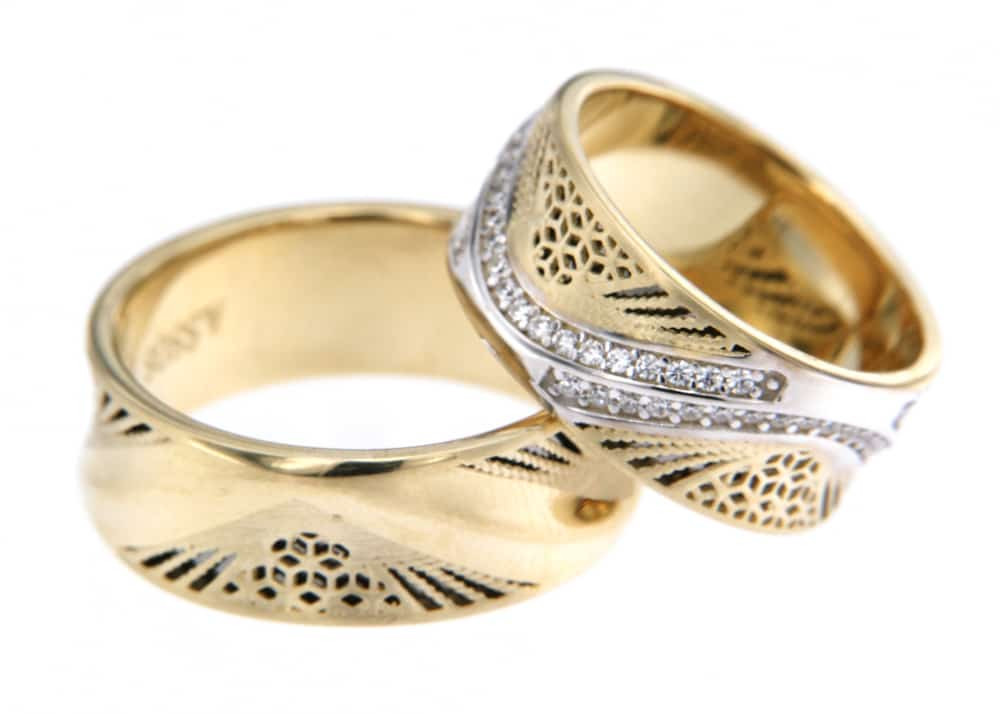 Венчални халки от " Jacklin hugasian " в жълто и бяло злато, мат и гланц.Фабрична изработка.