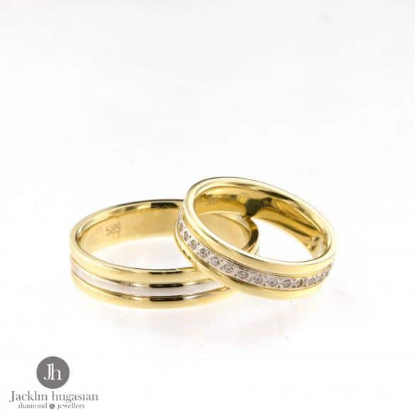 Венчални халки от "Jacklin hugasian " в жълто и бяло злато мат и гланц.