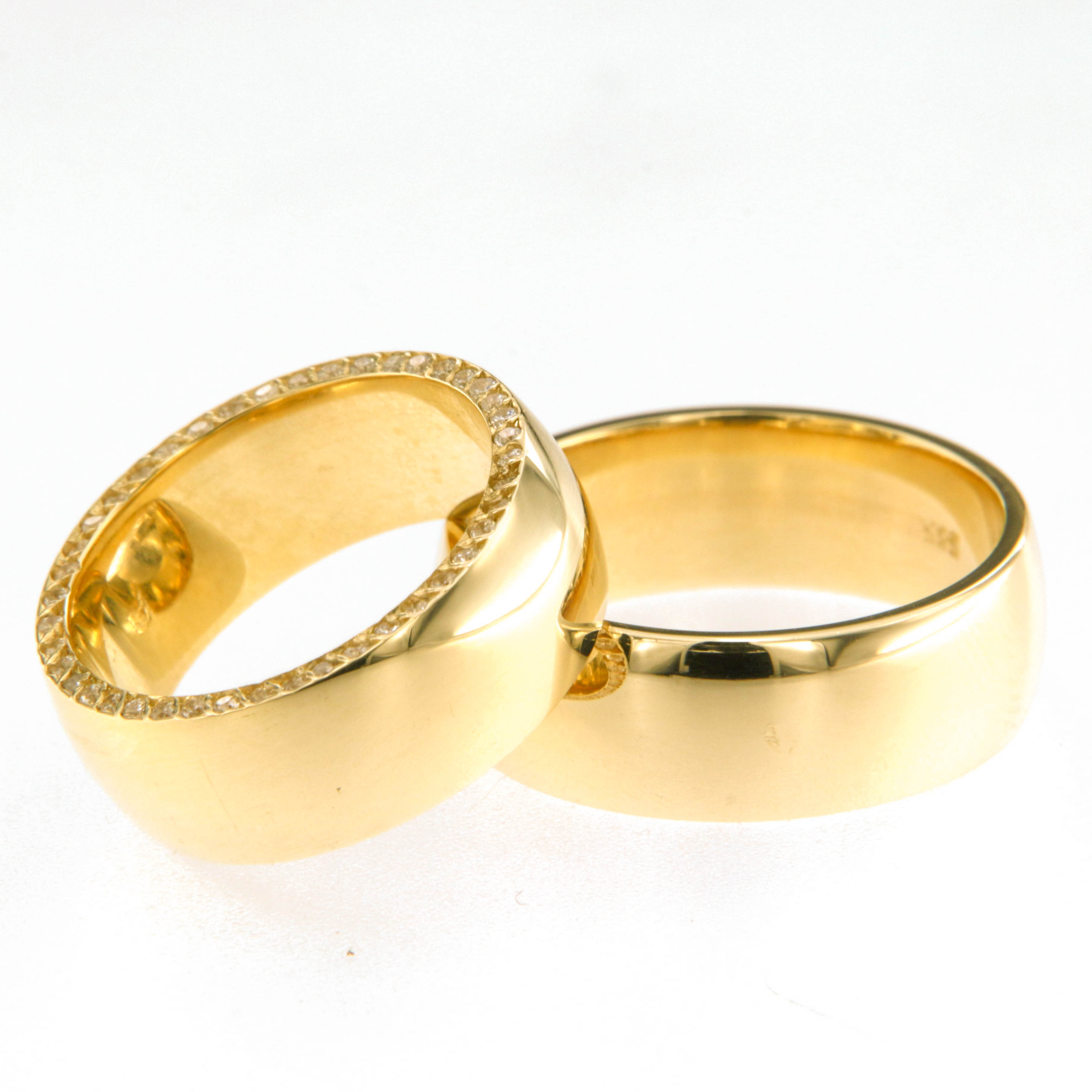 Венчални халки от "Jacklin hugasian " в жълто злато,гланц с цирконии. Фабрична изработка.