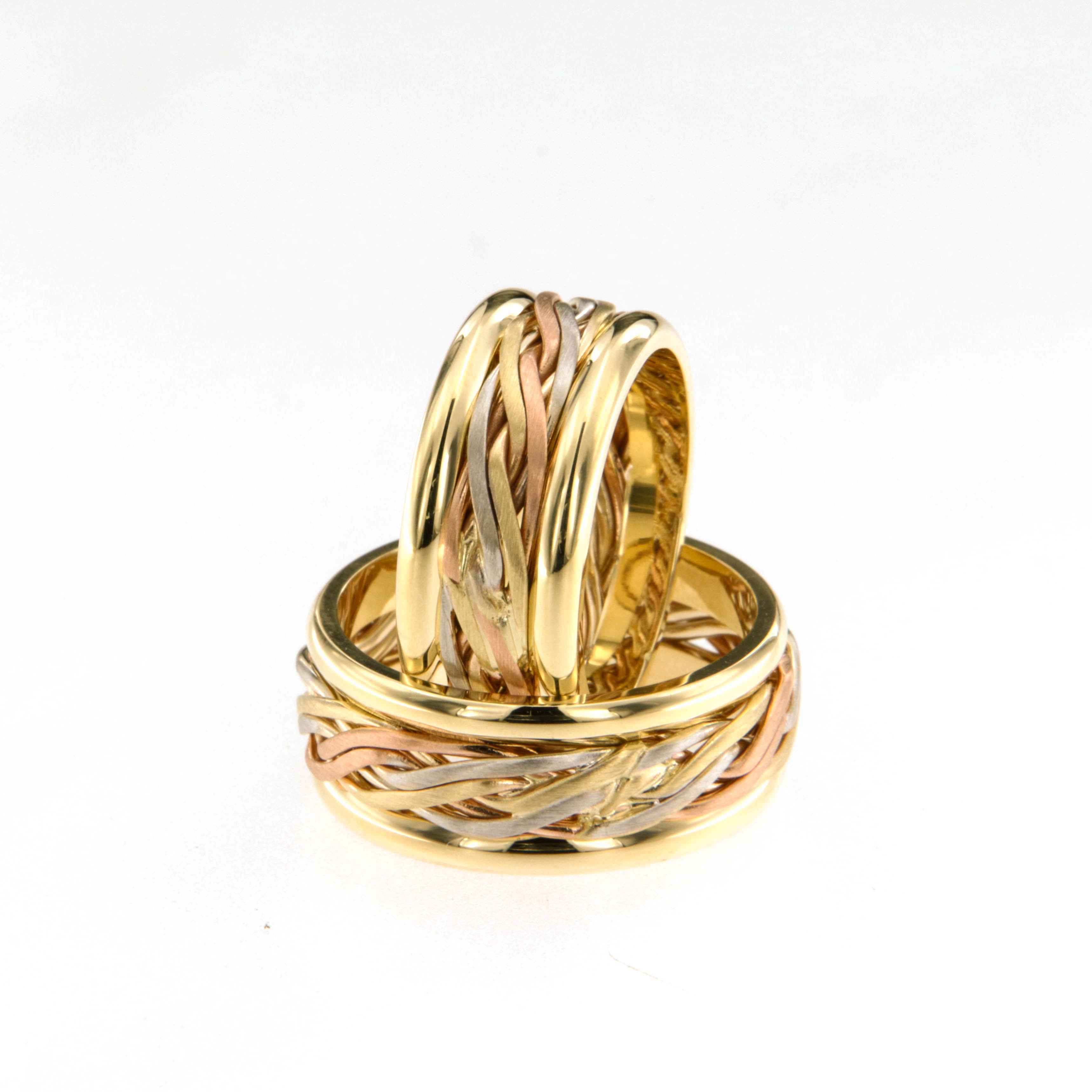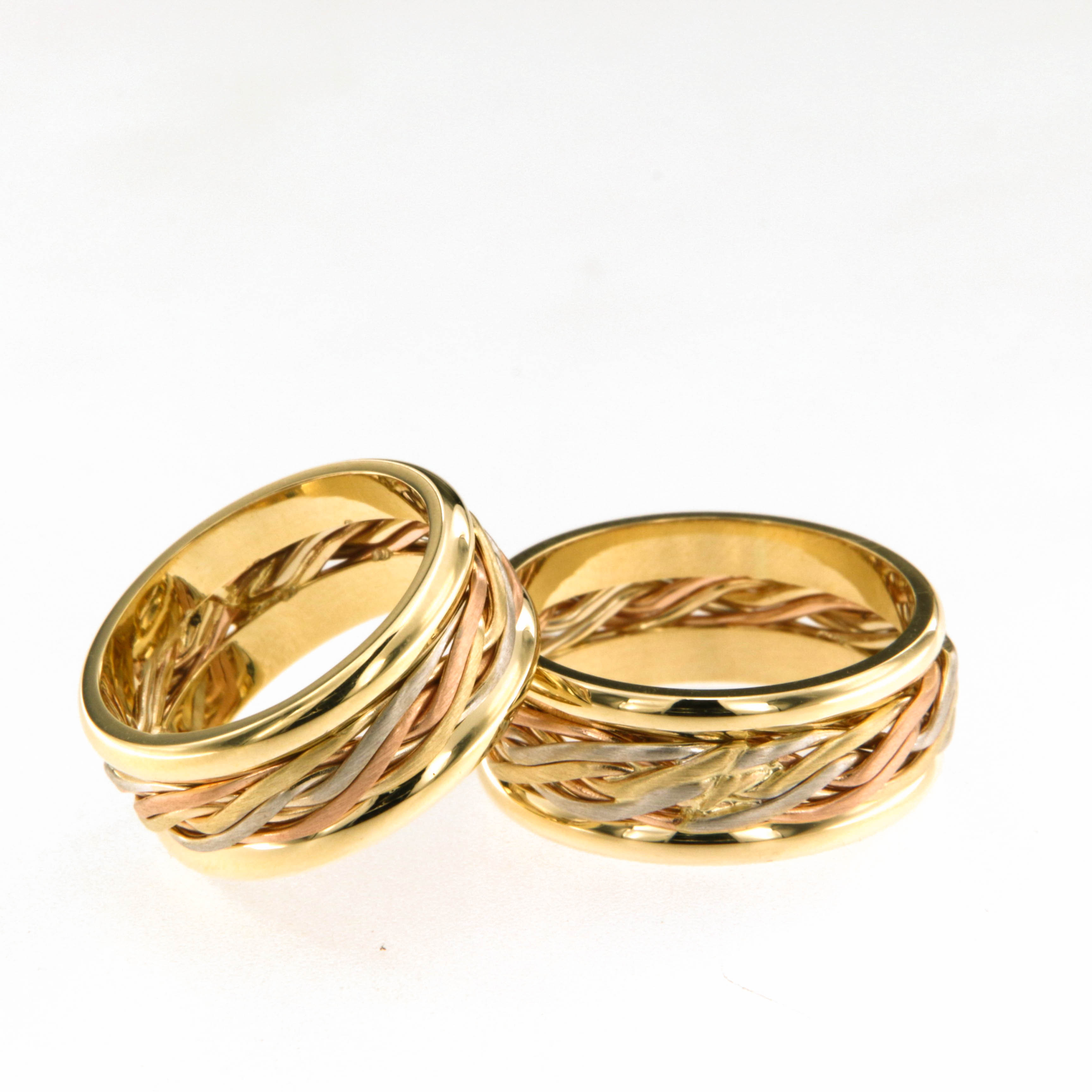 Венчални халки от "Jacklin hugasian " в жълто,бяло и розово злато,мат и гланц.Фабрична изработка.