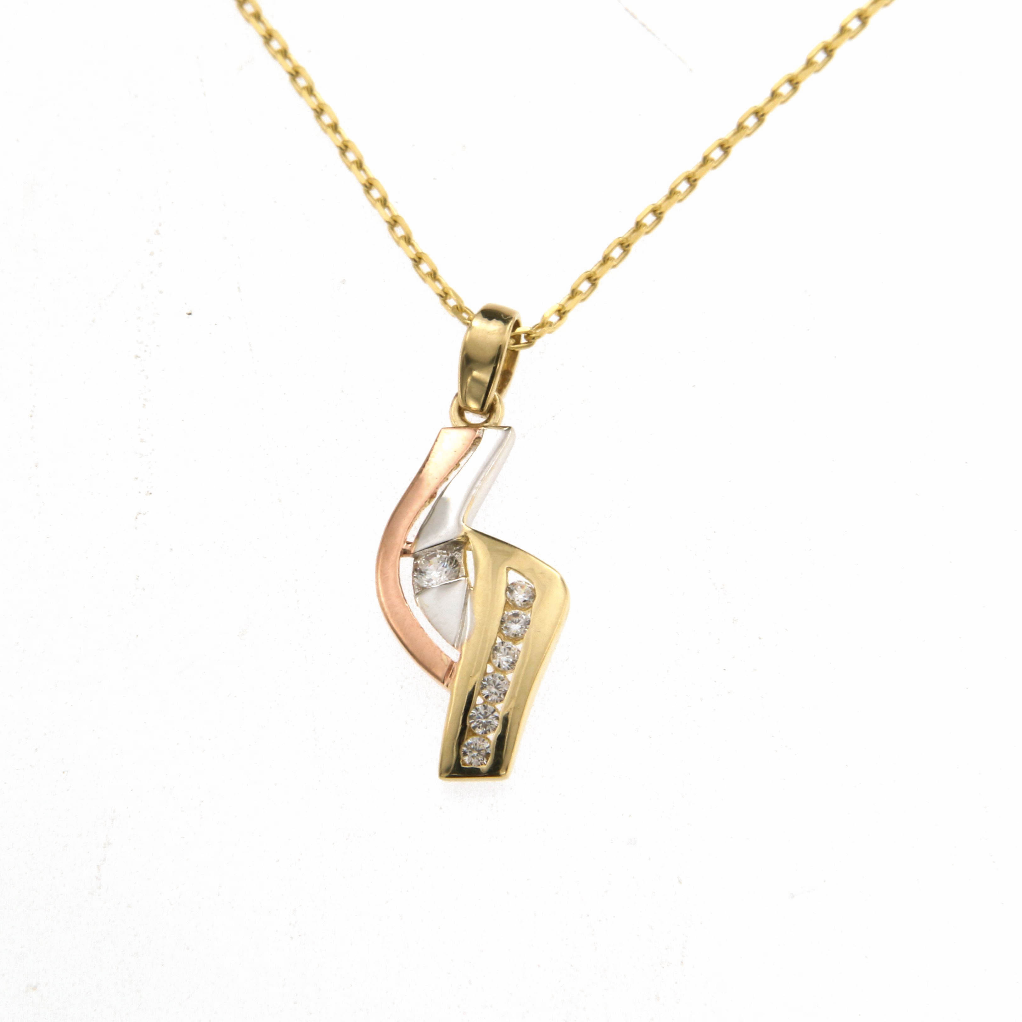 Висулка от " Jacklin hugasian " в жълто,бяло и розово злато,гланц с циркони.