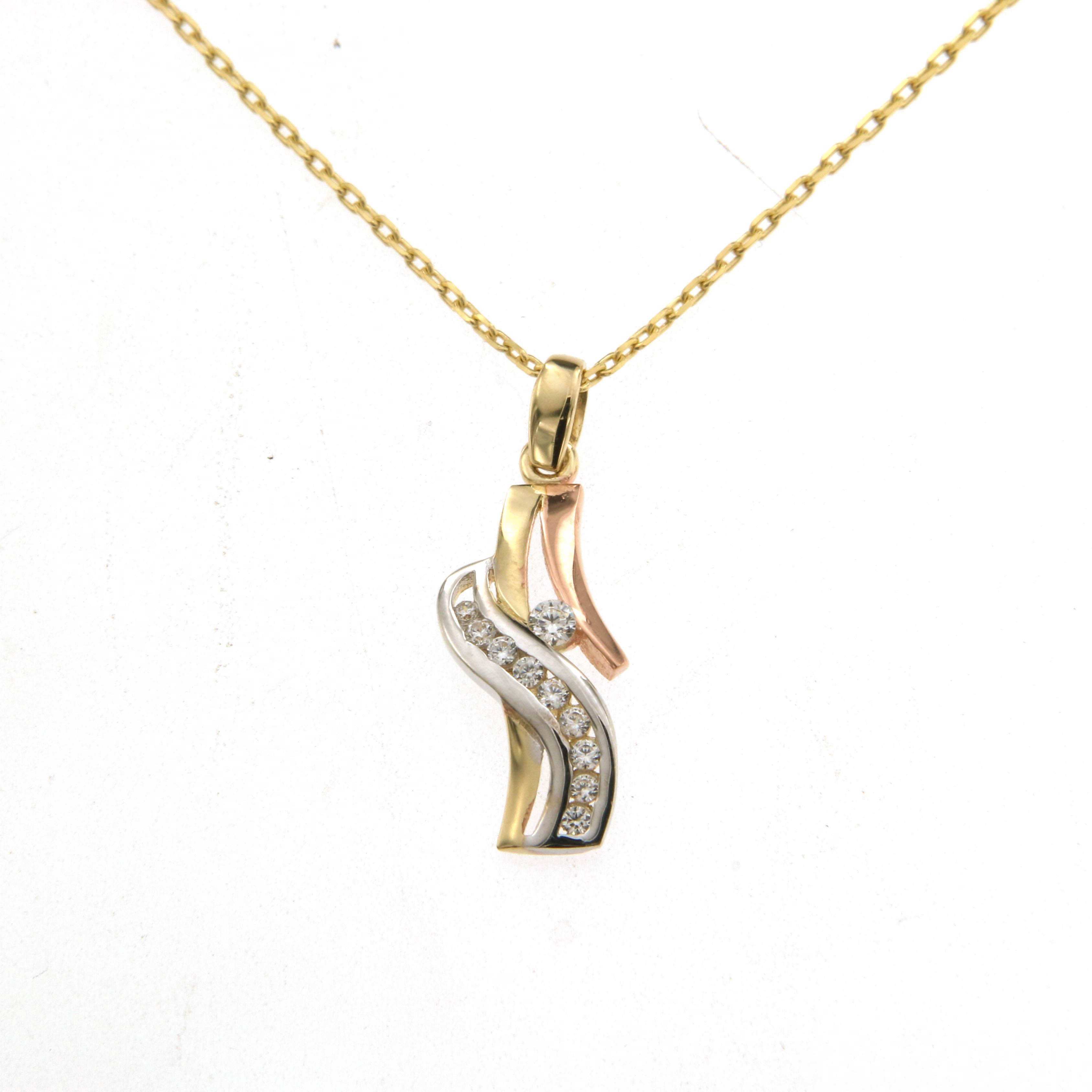 Висулка от " Jacklin hugasian " в жълто,бяло и розово злато,гланц с цирконий.