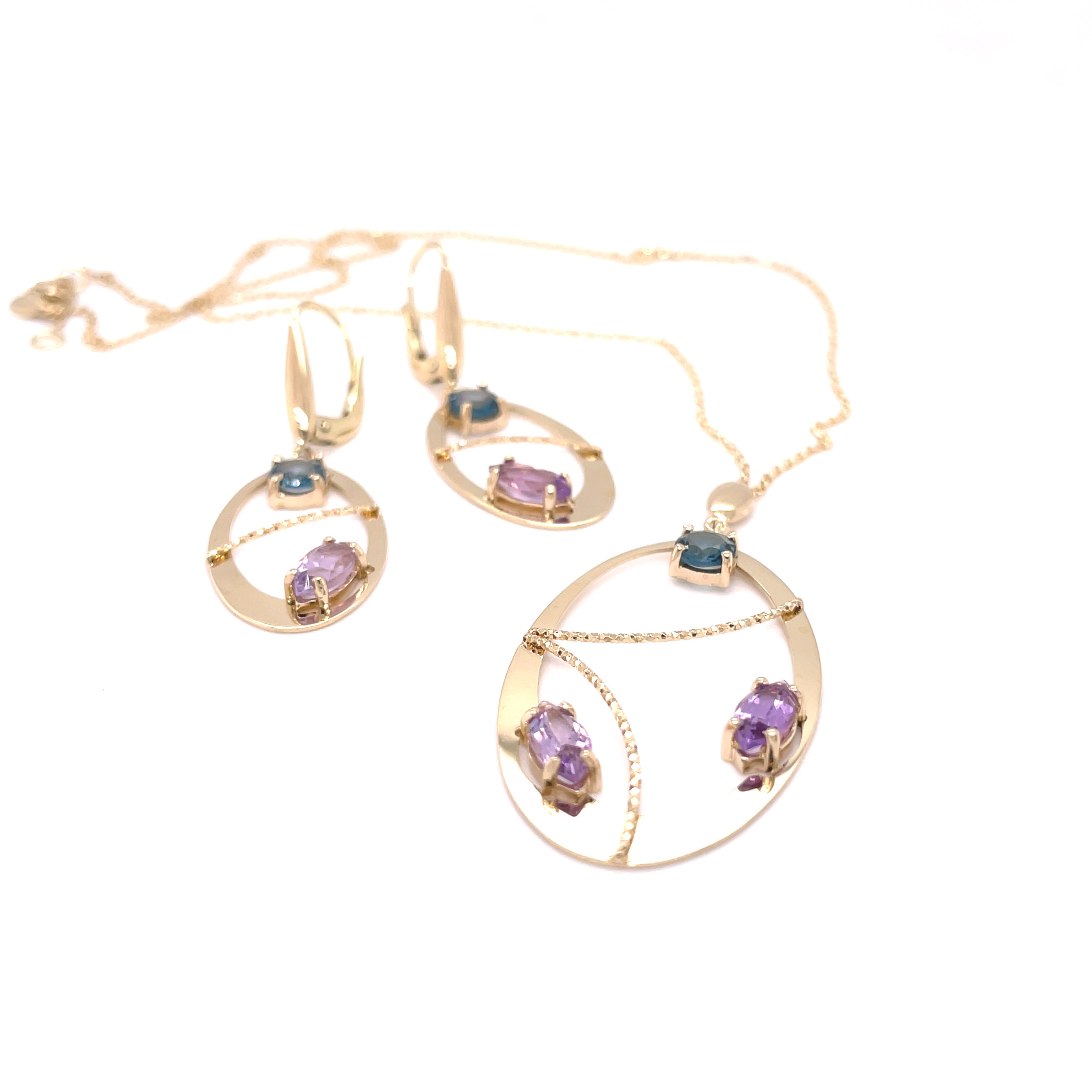 Колие от “ Jacklin hugasian “ в жълто злато с аметист и син топаз. Произход Италия.