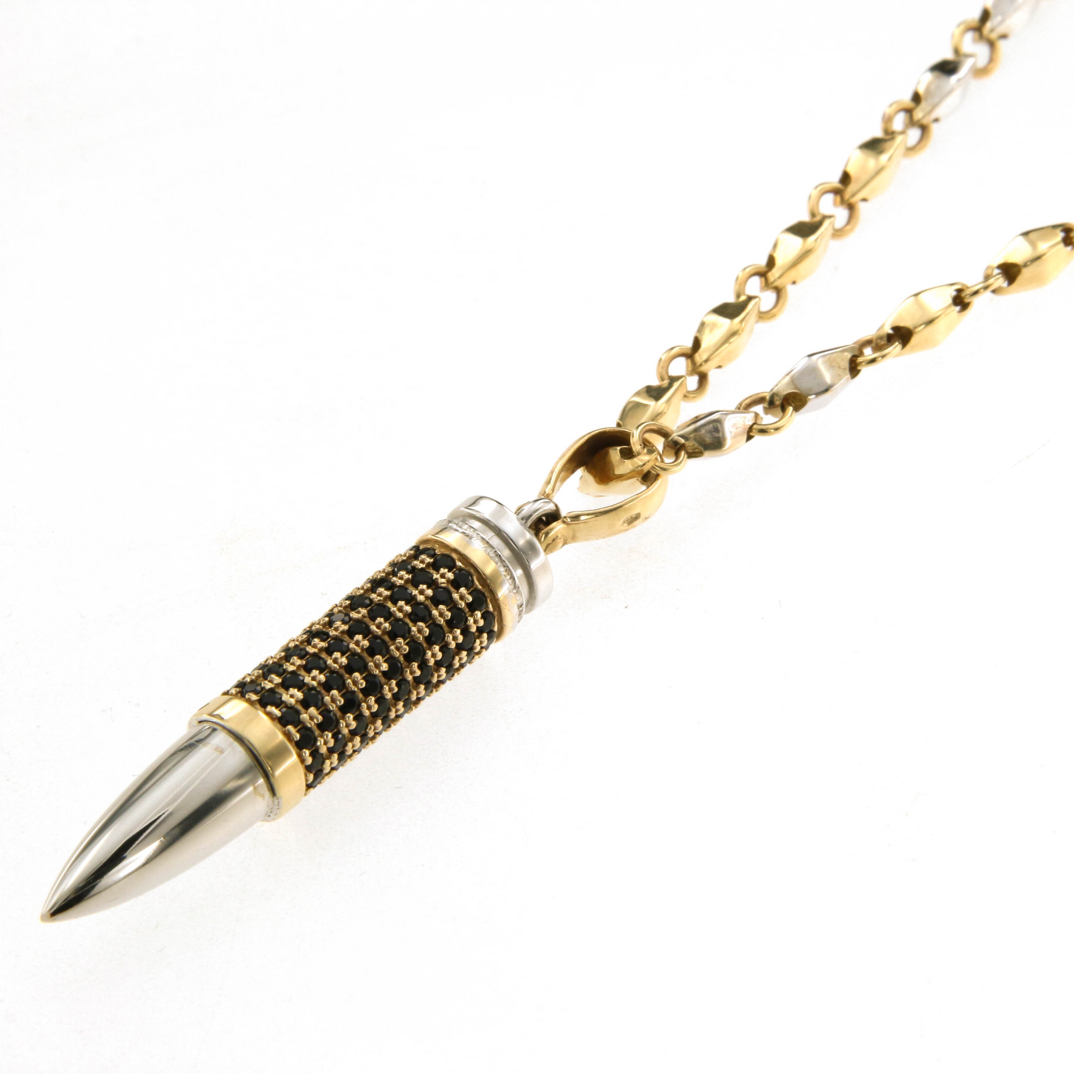 Златна висулка от "Jacklin hugasian" в бяло и розово злато с оникс. Дължина 4.5 см. Широчина 0.7 см.