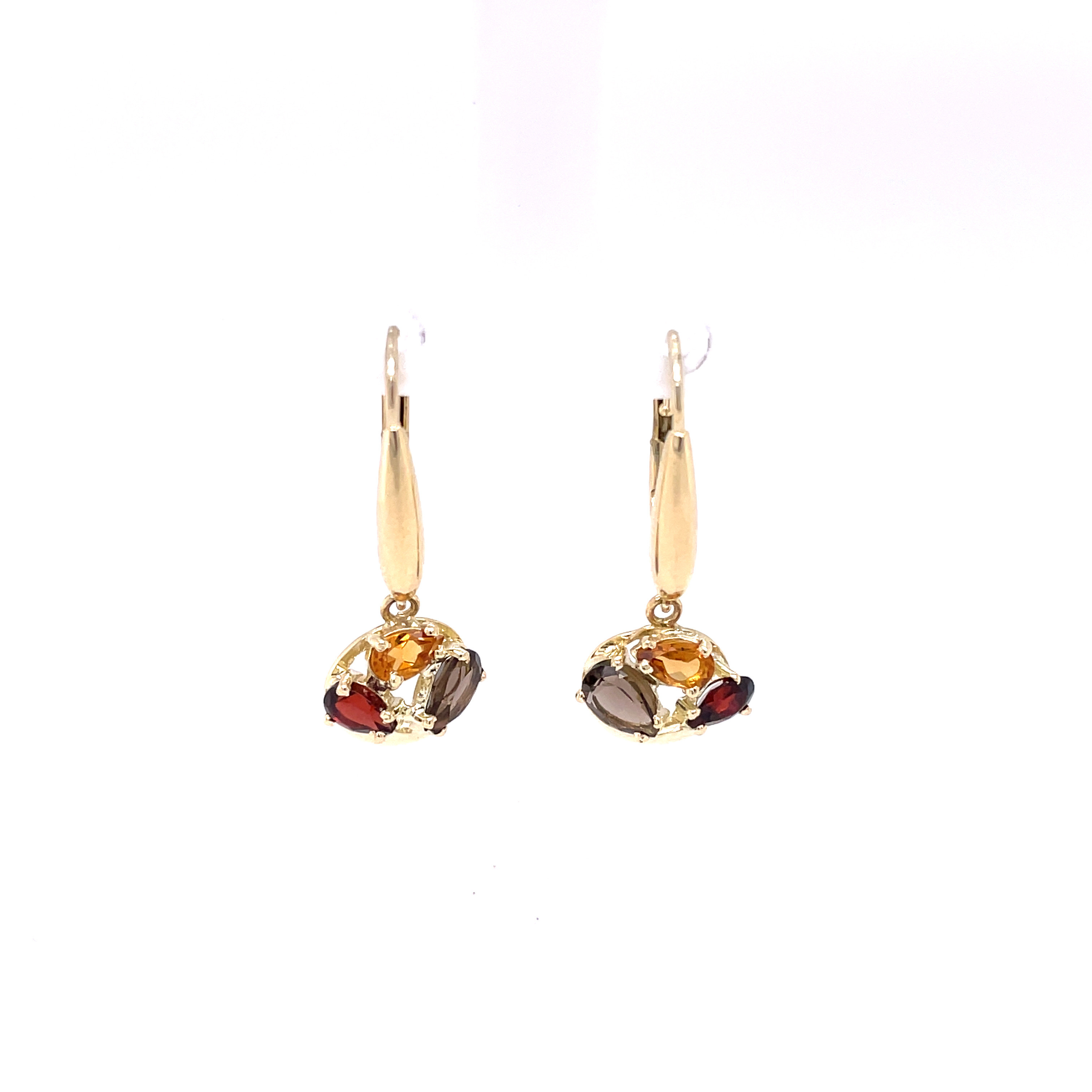 Обеци от “Jacklin hugasian“ в жълто злато с опушен, златист топаз и гранат.
